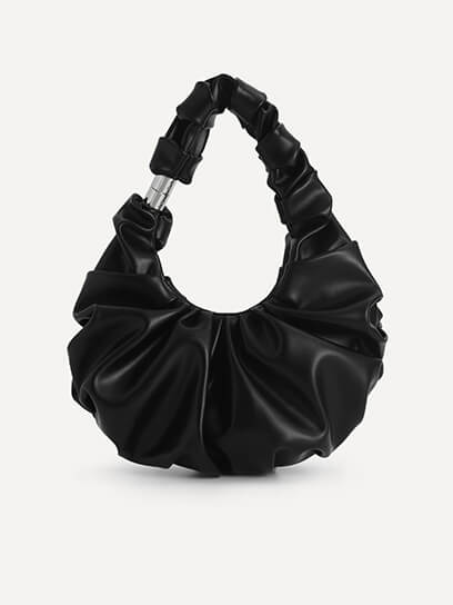 Venus Hobo Bag that is roomy and effortlessly stylish. Slip into our newly-launched Ruched Leather Flats for added elegance. In this style, she paired her all-black ensemble with the Ruched Leather Flats to add a touch of softness in contrast to her commanding outfit. Completing the look, is the regular Venus Hobo Bag that is roomy and effortlessly stylish.